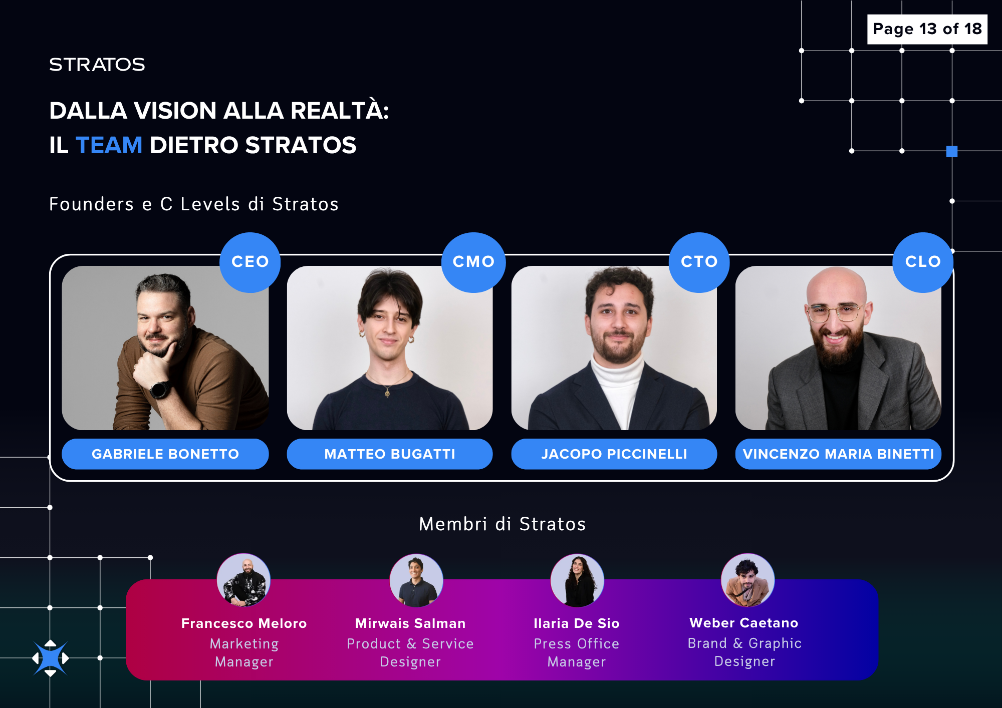 La società si avvale inoltre del supporto di un advisor professionale esterno indipendente, che ha stimato per Stratos un valore pre-money di circa € 4,6 milioni.